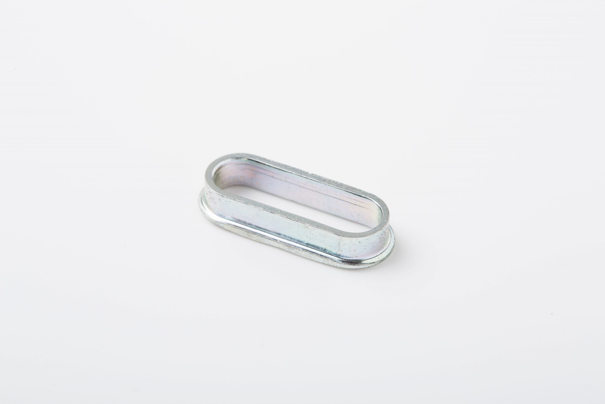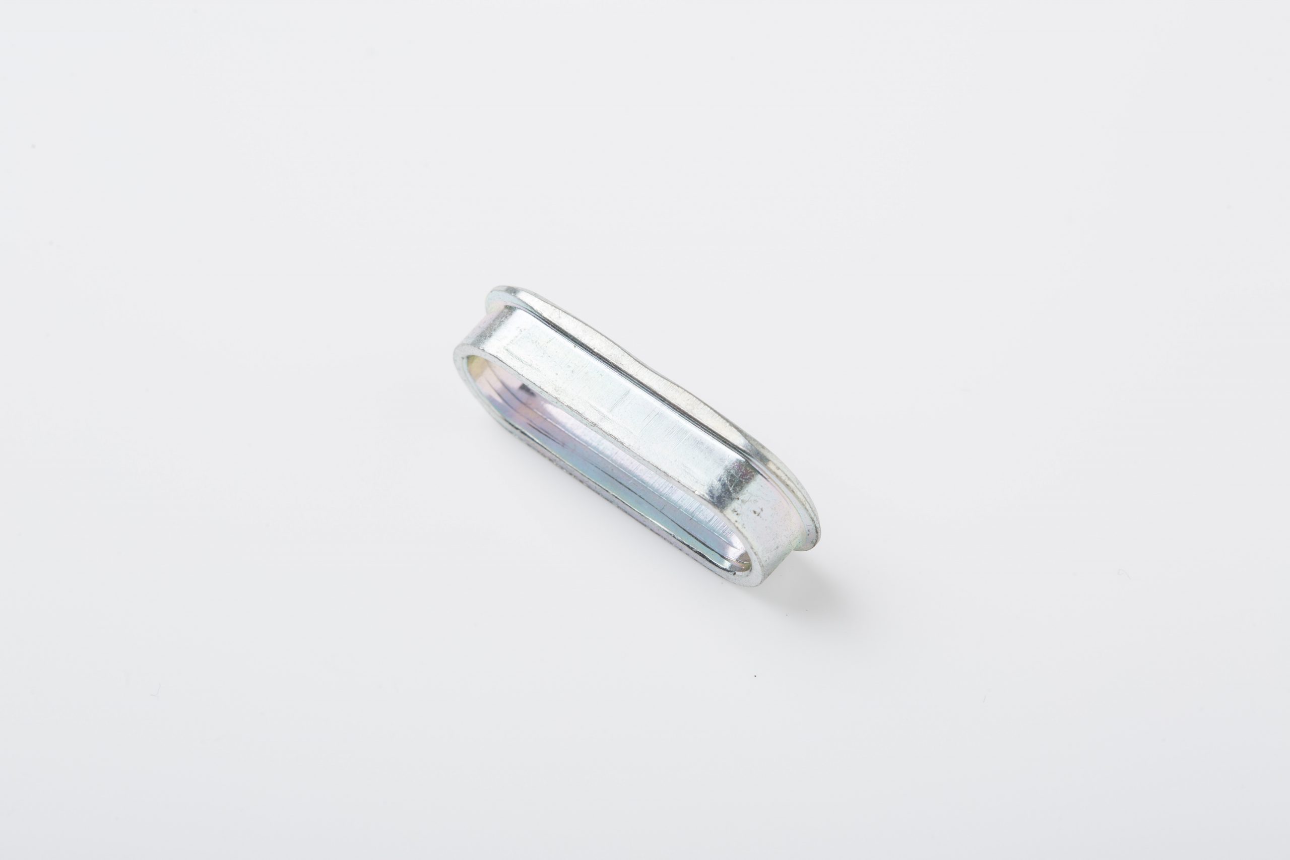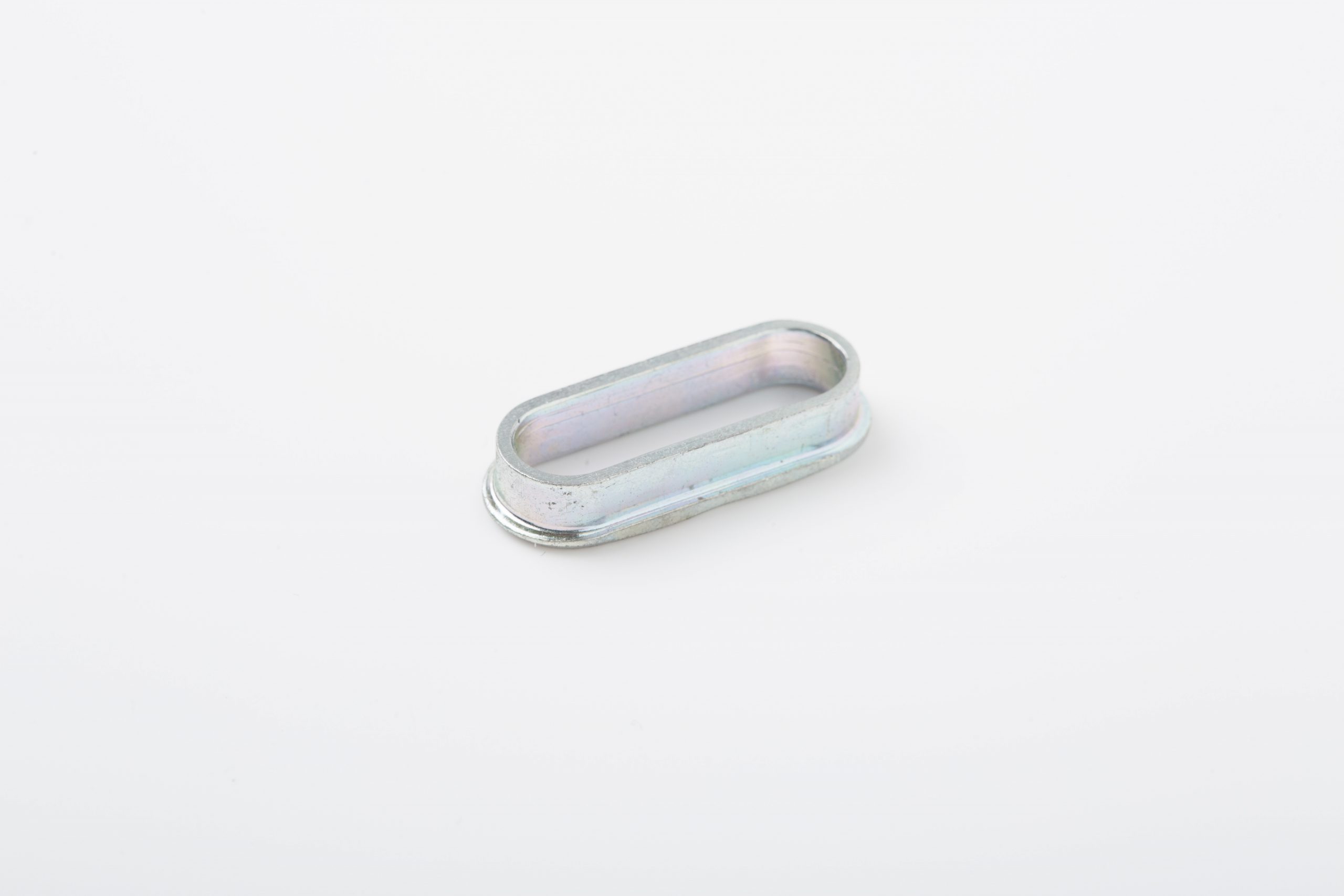 こちらは、特殊ナット・カラー製造.comが製造したスロット穴のインサートカラーという製品の一つです。細長い楕円形状を実現している点が挙げられ、丸形状ではなく、楕円形状を成型している点に特長があります。楕円形状にすることで、電装部品を取り付ける際に動きにゆとりを持たせることで取り付けが容易となります。本製品の用途としては、配線の保護・配線を行うためのもので、部品と部品の間に線を通す際にスペースの確保を目的として使用されます。このような特殊なカラー製品の加工を得意としています。お困りの製品がありましたら、お問合せください。量産はもちろん試作のナット・カラー製造にも対応いたします。