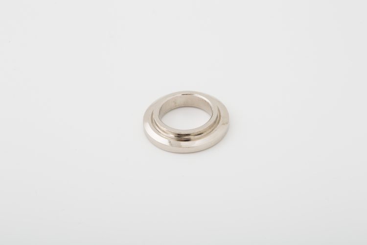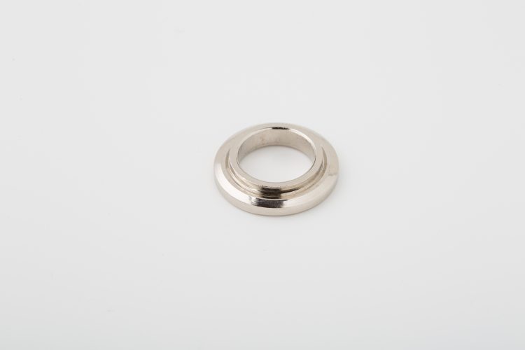 こちらは特殊ナット・カラー製造.comで加工した、特殊なつば付きスペーサーの一つで、本製品の特徴は、段付き形状(鍔付き)となっている点と、めっき処理を施している点にあります。