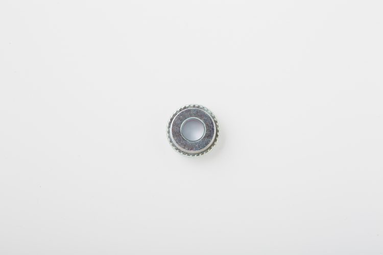 こちらは特殊ナット・カラー製造.comで加工した、特殊なインサートカラー製品の一つです。本製品の特徴は、内径部にキー溝加工を施している点と外形部分にローレット加工を施すことで回転防止を施している点が挙げられます。