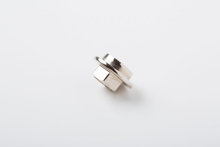こちらの製品は、1.5mmの薄いツバが付いているフランジ付きナットです。特殊ナット・カラー製造.comで製造した製品で、お客様の支給図面を用いて、加工を行っています。複雑な形状となりますが、鍛造加工を用いたことで圧倒的なコストメリットの提供が可能となっています。