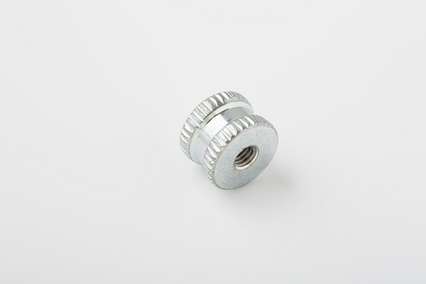 こちらは、特殊ナット・カラー製造.comで製造したローレットナットと呼ばれる製品です。特長として側面に溝加工が施されており、挿入後、回り止めの役割を果たしています。また、ナット製品の為、内径部にネジ加工も行っています。ロット2万個となる為、加工方法を工夫し、コストを抑え製品提供を行っています。