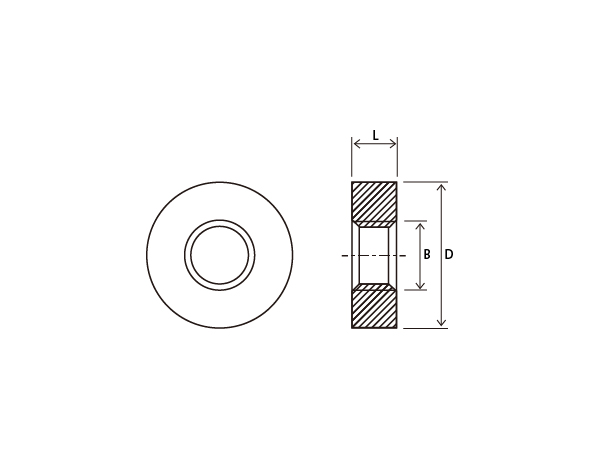 | NO. | ねじサイズ | D | L | B | 高さ寸法 | 内外径寸法 | 幾何公差 |